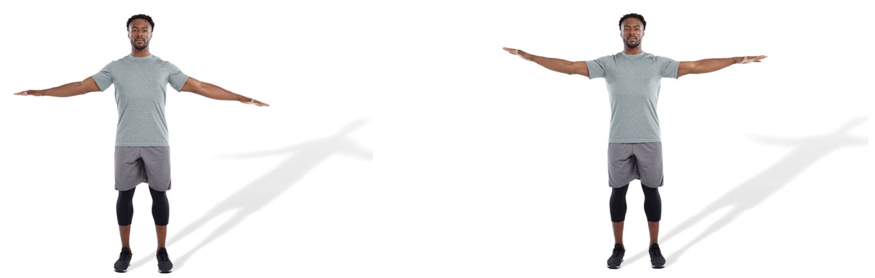 This is a simple, yet effective, warmup exercise. [ID: arm_circles]