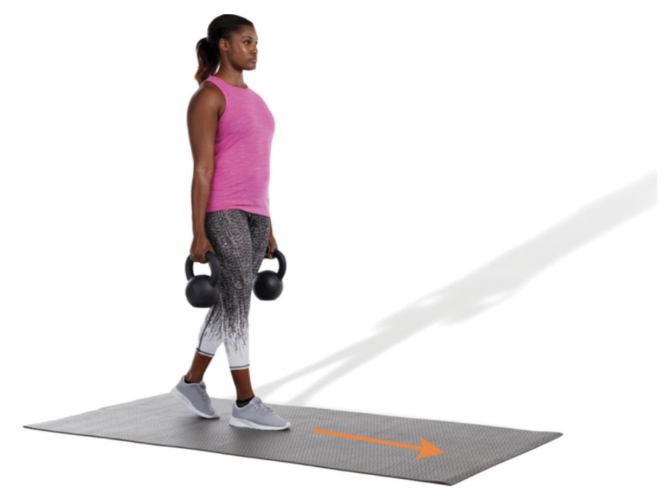 During this exercise, it is important to brace the abdominals and avoid excessive rotation or lateral flexion of the spine. Instead, keep an upright posture. [ID: farmers_carry]