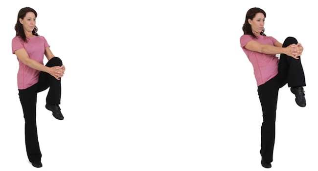 Try the high knee exercise as a simple warmup by: 1) Standing in place, and 2) Moving at a slower pace.