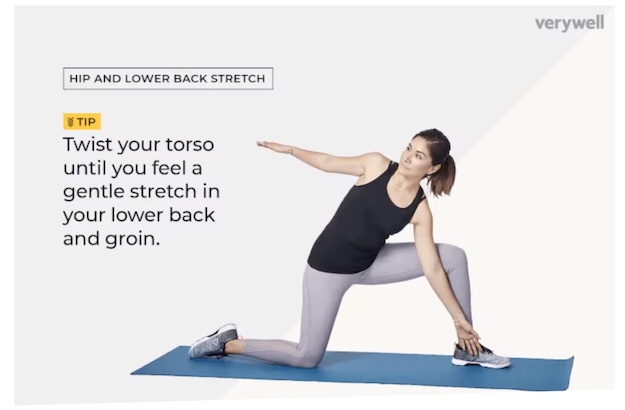 Article + video: "How to Do the Low Lunge Twist Stretch" from VeryWellFit, www.verywellfit.com/hip-and-lower-back-stretch-3120305