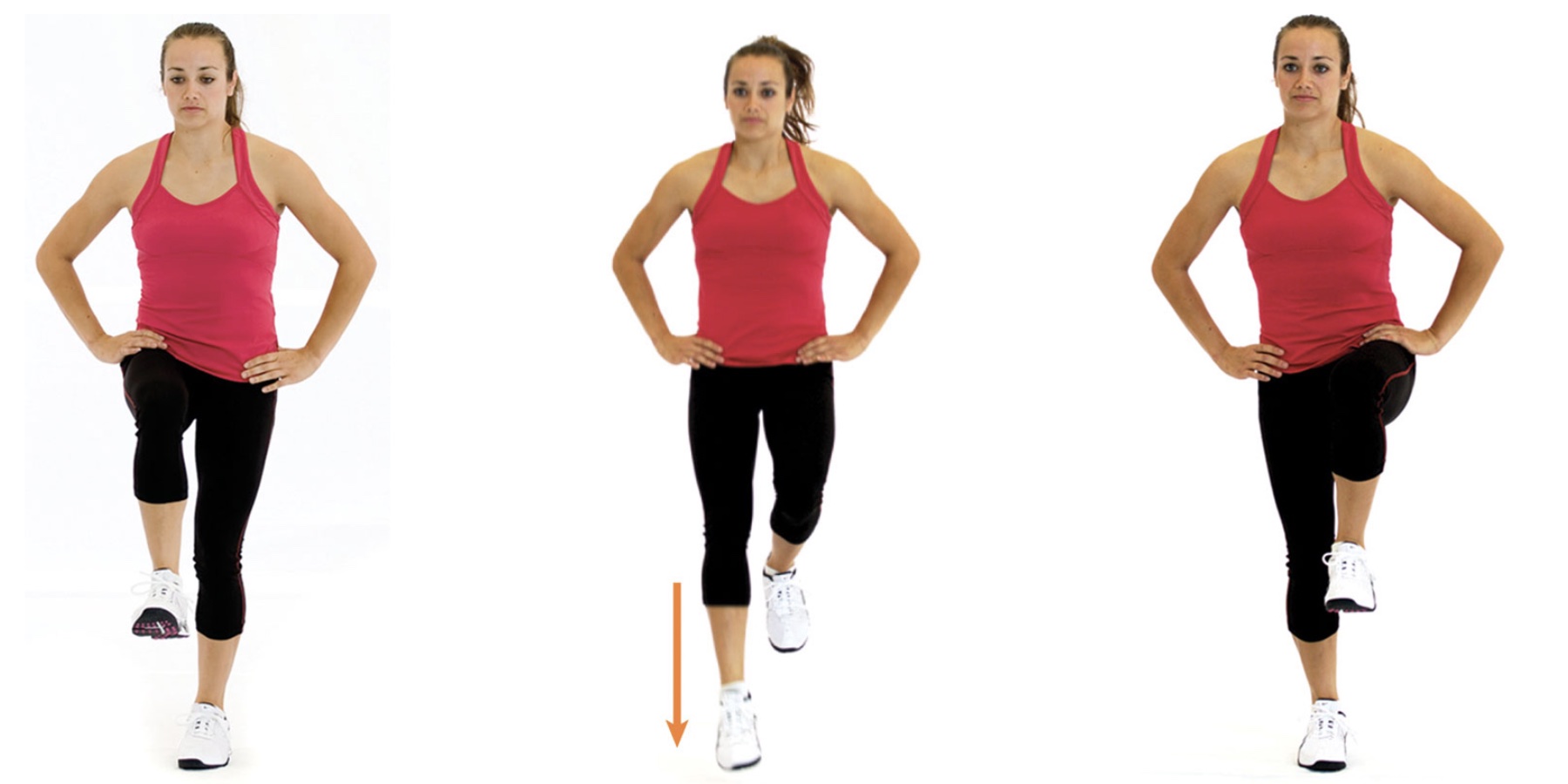 Make sure the landing is soft and quiet to ensure efficient acceptance of forces through the tissues, and keep the knee aligned with the second and third toes.