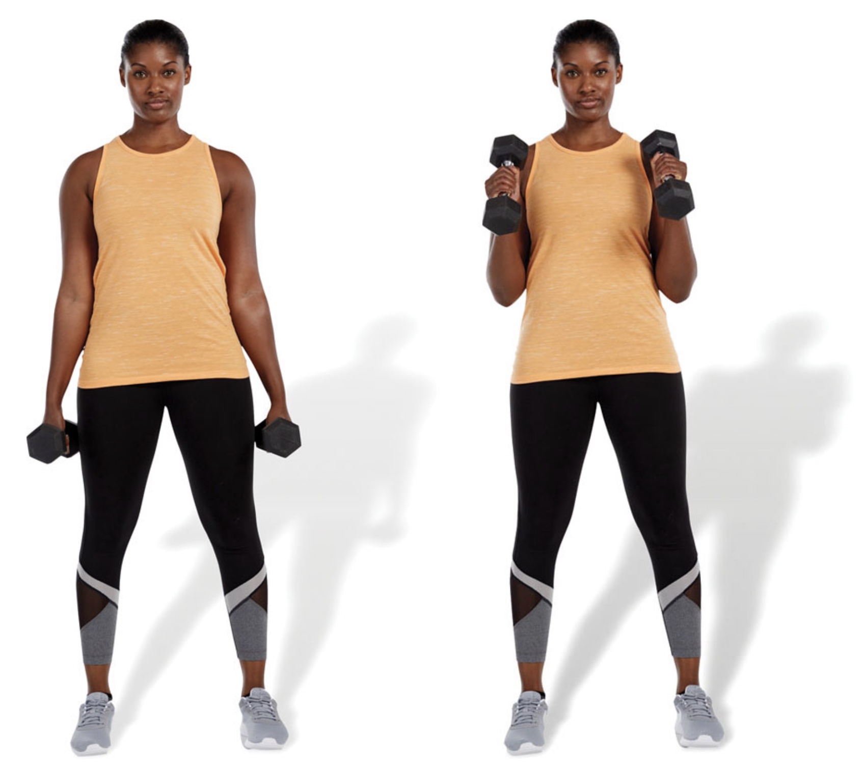 Palms should face each other throughout the duration of the movement. This exercise also strengthens forearm muscles in addition to the biceps brachii.