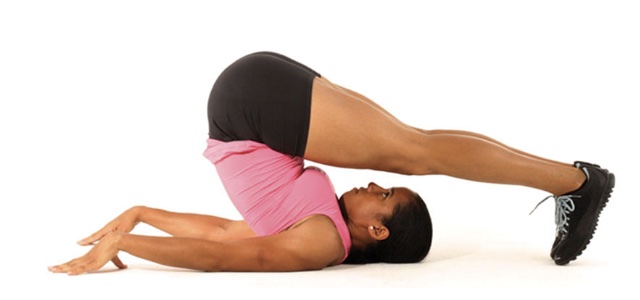 Description: Clients with a history of neck or back injury should not perform this stretch owing to the high stress it places on these structures. This position should also be avoided by individuals with high blood pressure (hypertension). [ID: dynamic15]