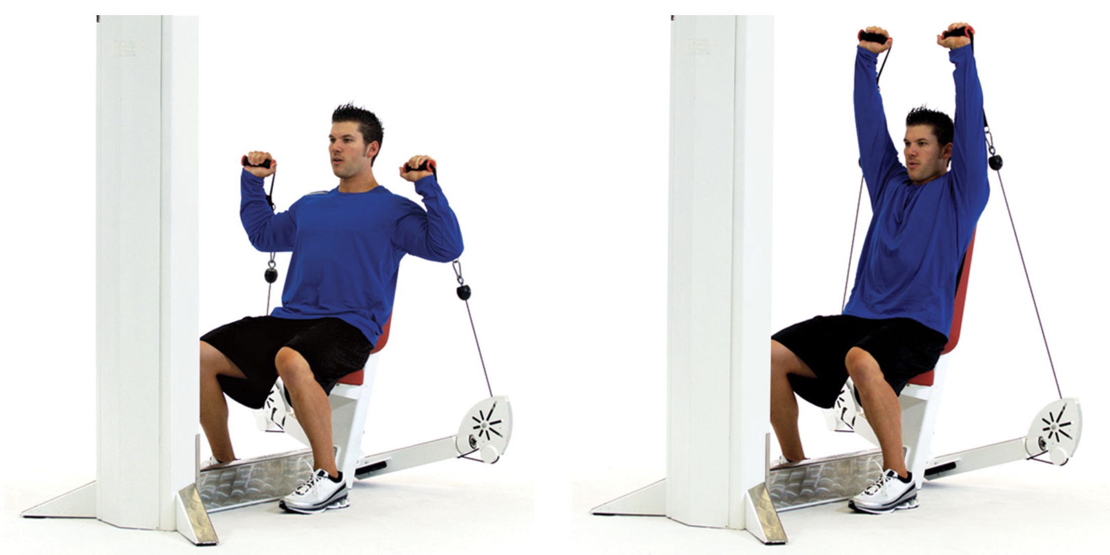 Description: Ensure that the client is properly positioned on the machine with their feet flat on the floor. [ID: shoulder09]