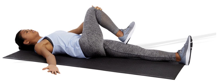Description: Kneel with front and back legs flexed at a 90-degree angle. Draw in the navel and posteriorly rotate the pelvis. Squeeze the gluteal muscles of the side being stretched. As a progression, raise the arm (on the same side as the back leg) up and over to the opposite side while maintaining pelvis position. Hold side bend position and slowly rotate posteriorly as illustrated. To emphasize the TFL, externally rotate the rear leg, whereas to emphasize the psoas, internally rotate the rear leg. [ID: stretch11]